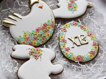 1. Роспись «по-мокрому». Учитель покажет, как создать рисунки на ещё не высохшей глазури. Вы рассмотрите этапы создания горошка и цветочков, создавая отдельную коллекцию пасхальных пряников.