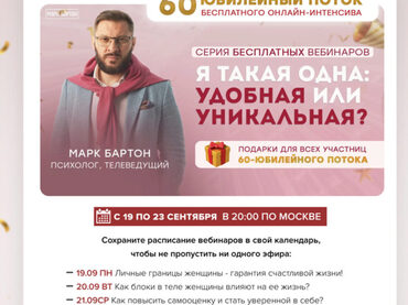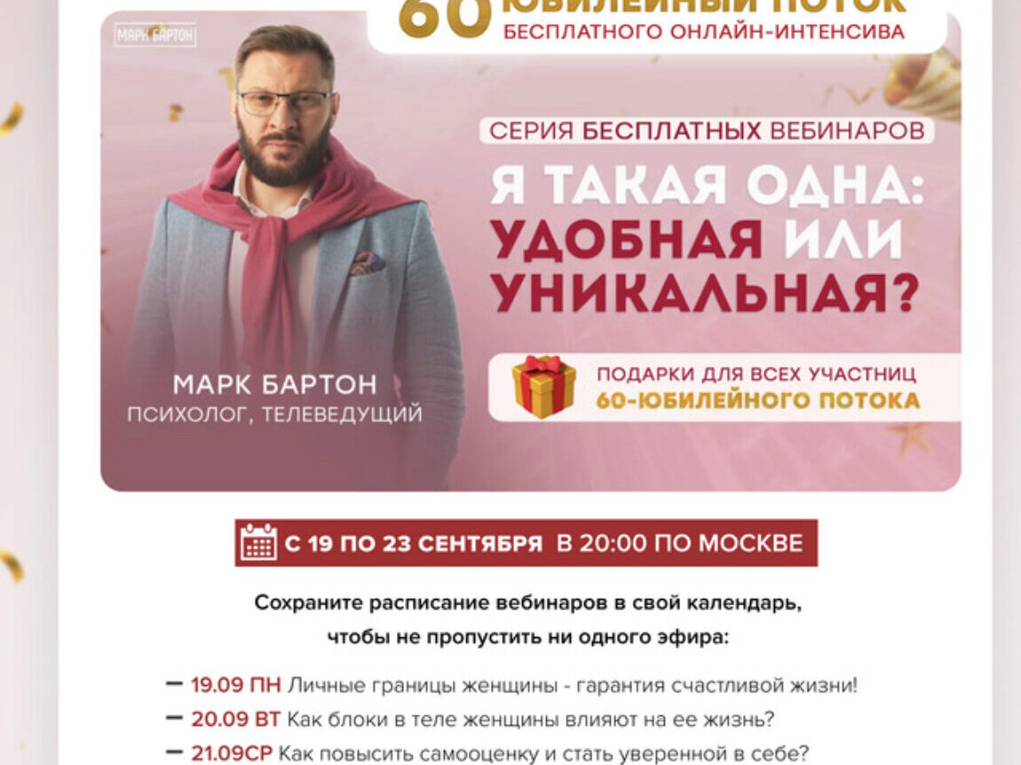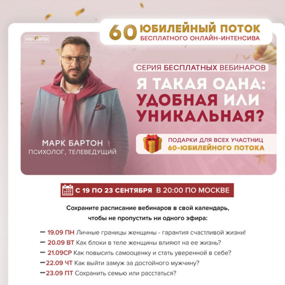 Курс Я такая одна: удобная или уникальная. Серия из 5 вебинаров, автор Марк Бартон. 5 терапевтических лекций по 2 часа