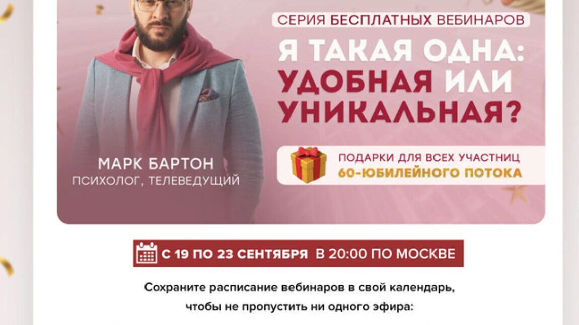 Часто задаваемые вопросы про курс Марка Бартона — «Я такая одна: удобная или уникальная. Серия из 5 вебинаров»