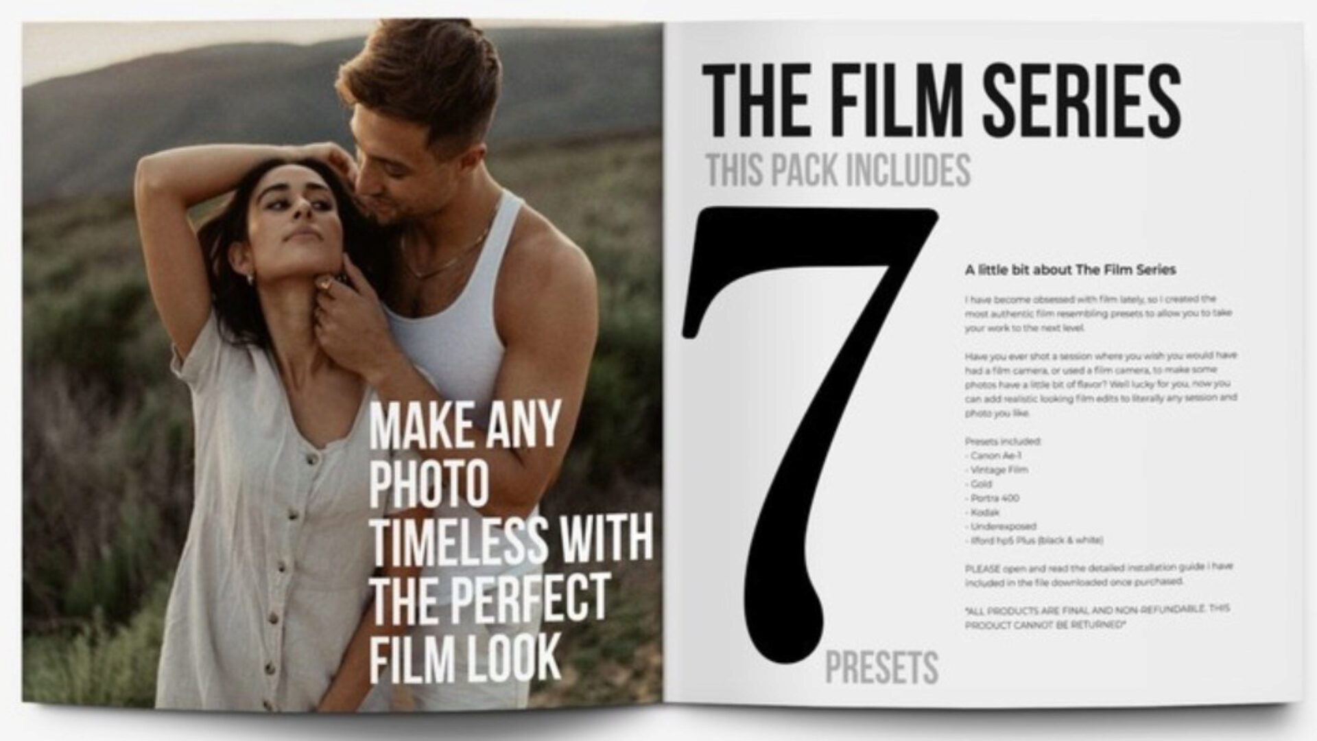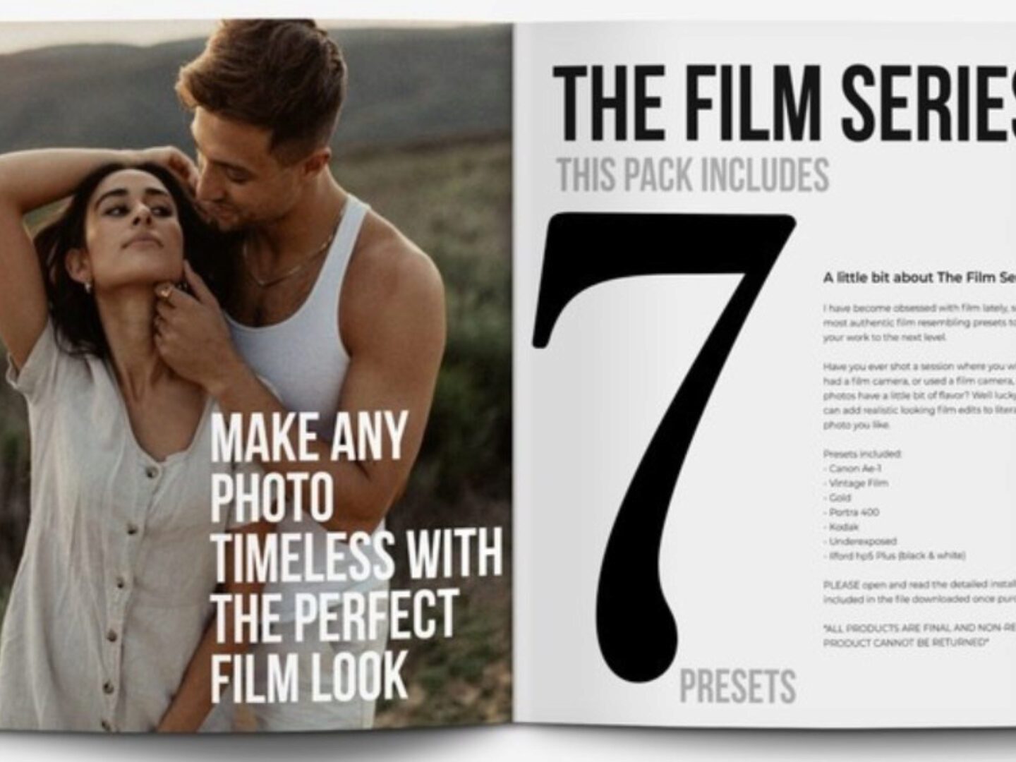 Пресеты Film имеют цифровые эмуляции красивых тонов и магических оттенков. Классика и ностальгия, эта высокостилизованная коллекция воссоздает взгляды традиционных фотографических пленок.