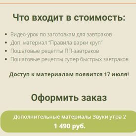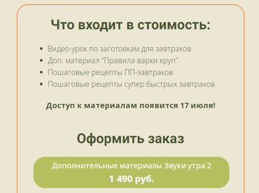 Готовьте легко и быстро нескучные завтраки как в ресторане, чтобы заряжать себя на весь день и радовать близких. - Старт курса 21 ноября Для кого курс: •Наскучили бутерброды, овсянка и яичница по утрам. •Хотите утром получать заряд энергии и настрой на весь день. •Хотите радовать себя и близких