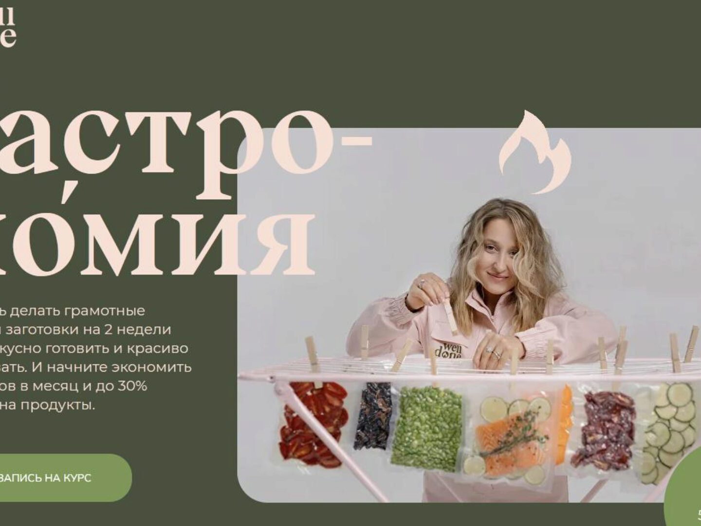 Научитесь делать грамотные закупки и заготовки на 2 недели вперед, вкусно готовить и красиво сервировать. И начните экономить до 40 часов в месяц и до 30% бюджета на продукты. Курс стартует 5 августа Этот курс для вас, если: Вам надоело каждый день искать ответ на вопрос «Что сегодня приготовить?»