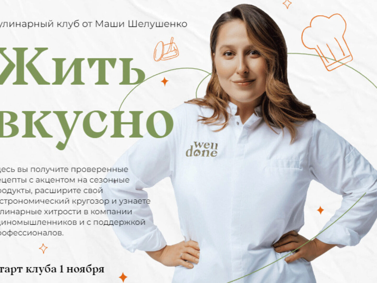 Жить вкусно. Кулинарный клуб от Маши Шелушенко. Январь - Июнь 2023. Тариф Полугодовой (Маша Шелушенко) Мы все часто покупаем одни и те же продукты, готовим одинаковые блюда, ходим в проверенные места и берём там знакомые позиции меню. Так проще, но в итоге мы оказываемся в замкнутом круге, в