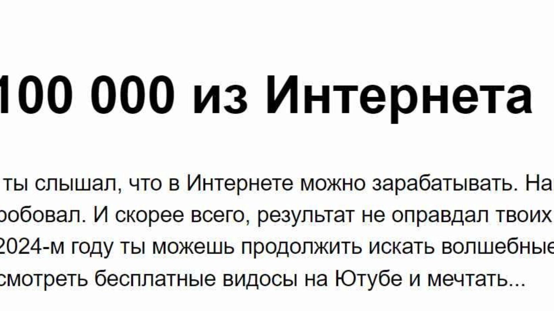 Конечно в 2024-м году ты можешь продолжить искать волшебные схемы, смотреть бесплатные видосы на Ютубе и мечтать...