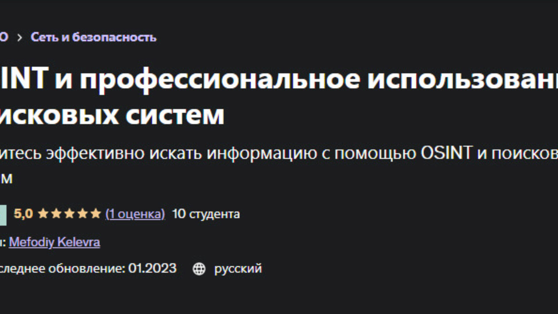 Отзывы о курсе [Udemy] OSINT и профессиональное использование поисковых систем (Mefodiy Kelevra)
