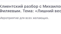 Да, Вы можете получить получить бесплатно фрагмент курса «Клиентский разбор с Михаилом Филяевым. 27.08.2021. Лишний вес.», просто напишите на почту или в телеграм