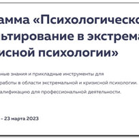 Невозможно предположить, с чего начнётся кризис и где он вас настигнет. Но страшно только то, что неизвестно. Поэтому мы собрали в одном месте все знания о кризисах, стрессе и их воздействии на человека. Представляем новую программу «Психологическое консультирование в экстремальной и кризисной психологии» с присуждением квалификации «Кризисный психолог».