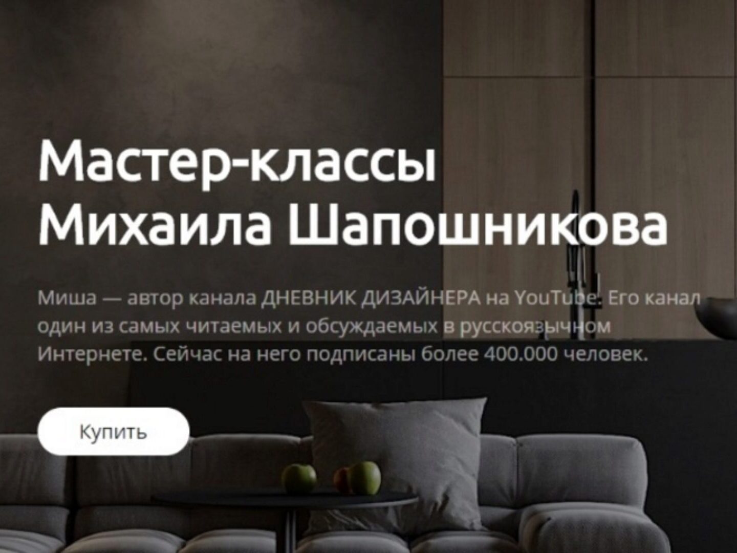 Обычным людям, которые хотели бы проверить своего дизайнера, но не знают как. Или самим освоить принцы составления Современного дизайна. Михаил научит правильно работать с дизайнерами и поможет усилить «вкус» в современных интерьерах