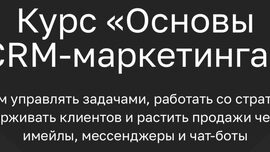 В чем особенность курса: СRM-маркетолог настраивает и внедряет систему сбора данных и анализа о клиентах, с помощью которой компании успешно удерживают текущих клиентов и привлекают новых. Все это и есть CRM-система. Зарплата СRM-маркетолога от 80 000 руб в месяц. Этот краткий курс поможет Вам