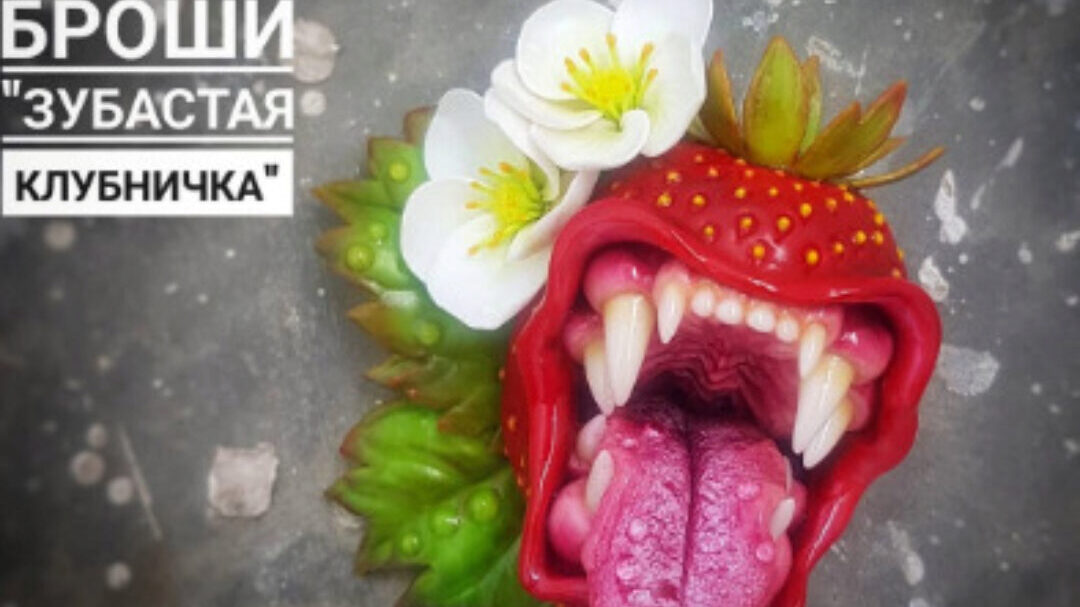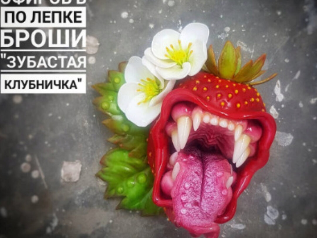 Курс Лепка - Брошь «Зубастая Клубничка», автор ministerstvo_podarkov. Вы получите запись эфиров по лепке броши «Зубастая клубничка» от начала и до конца:
