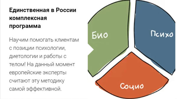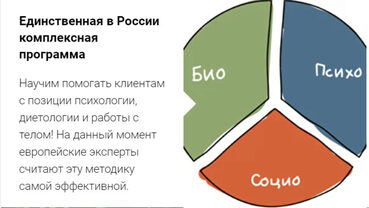 Как стать и быть эффективным консультантом по питанию / психологом / диетологом? Вы получите видеозаписи занятий, вебинаров, семинаров, включающих 4 блока полноценного обучения объемом 650 часов. Кому подходит курс? Специалистам с высшим образованием или студентам старших курсов, которые хотят