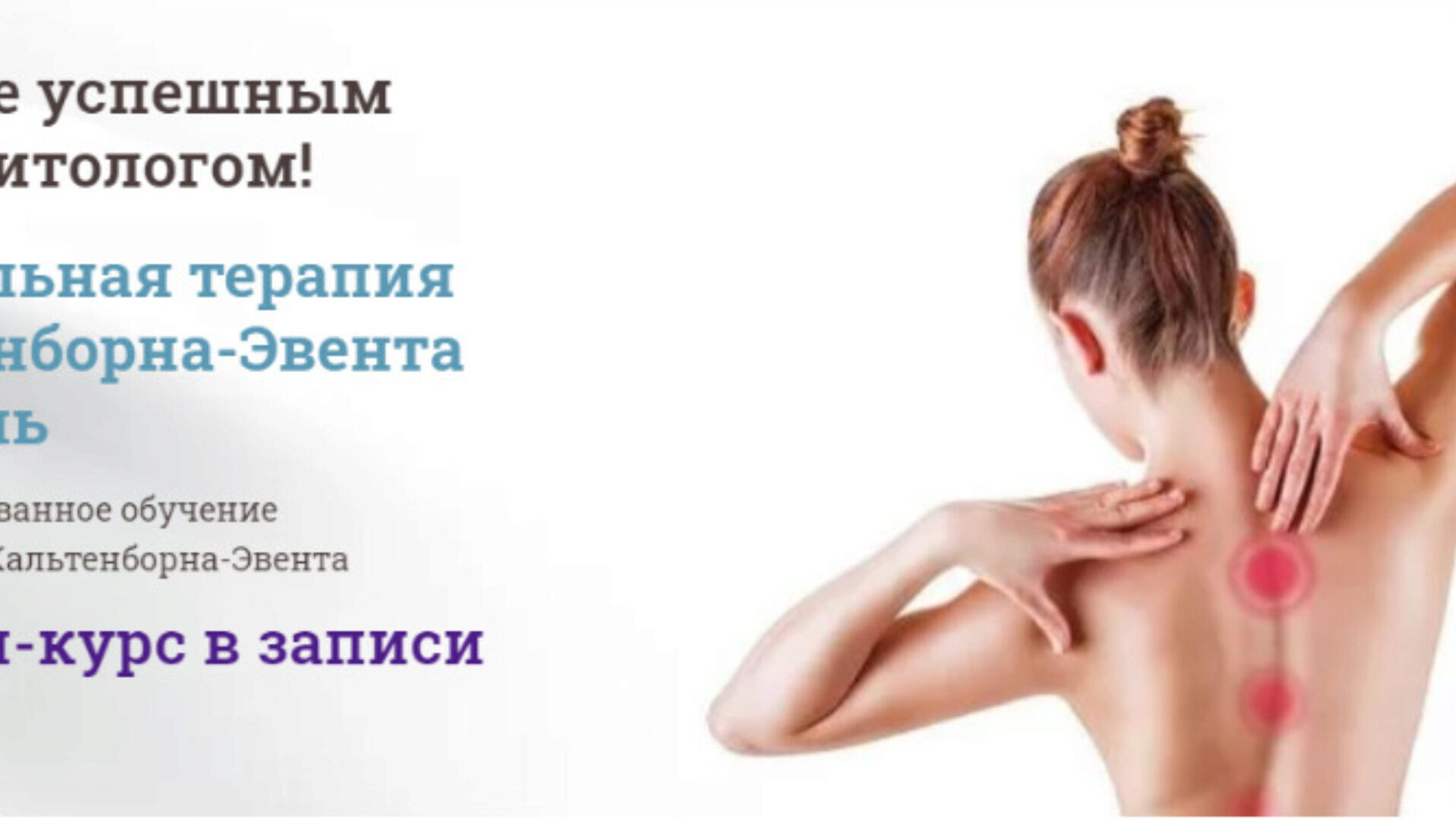 Базовое обследование и лечение грудного и шейного отделов позвоночника по методике Кальтенборна-Эвента Чему научитесь на курсе: - Главный результат - углубленное изучение функциональной анатомии и биомеханики шейного и грудного отделов позвоночника, диагностики и базовых техник; - Разберетесь в