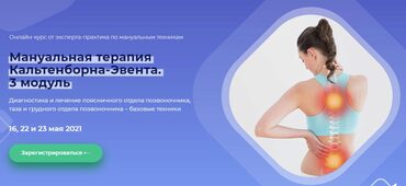 Базовое обследование и лечение грудного и шейного отделов позвоночника по методике Кальтенборна-Эвента Чему научитесь на курсе: - Главный результат - углубленное изучение функциональной анатомии и биомеханики шейного и грудного отделов позвоночника, диагностики и базовых техник; - Разберетесь в