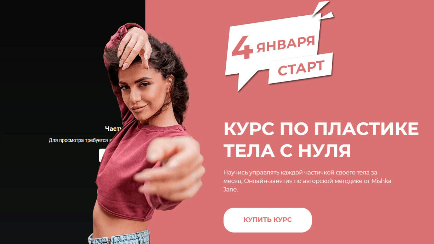 Курс по пластике с нуля. Базовый курс, автор Mishka Jane. Научись управлять каждой частичкой своего тела за месяц. Онлайн-занятия по авторской методике от Mishka Jane.