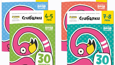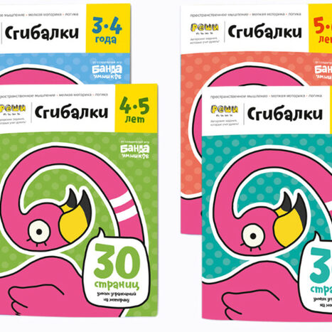 Во второй — на каждом листе два сгиба, здесь придётся научиться подгонять кусочки точно друг к другу, чтобы получилась картинка. Рисунки спроектированы особым образом: широкие контуры и продолжительный обрыв картинки «с запасом» позволяют сложиться рисунку, даже если ребёнок немного промахнулся в сгибе.
