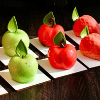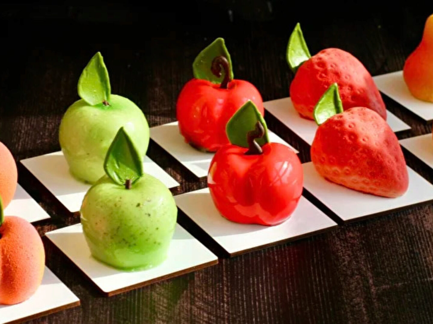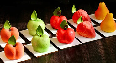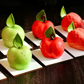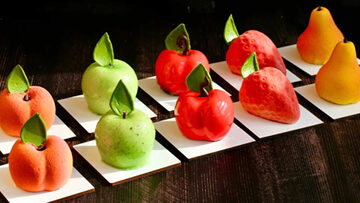 6 муссовых пирожных-фруктов.