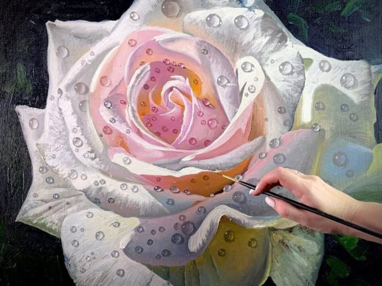 - Вы думали, чтобы написать белую розу нужна белая краска? Нет!!