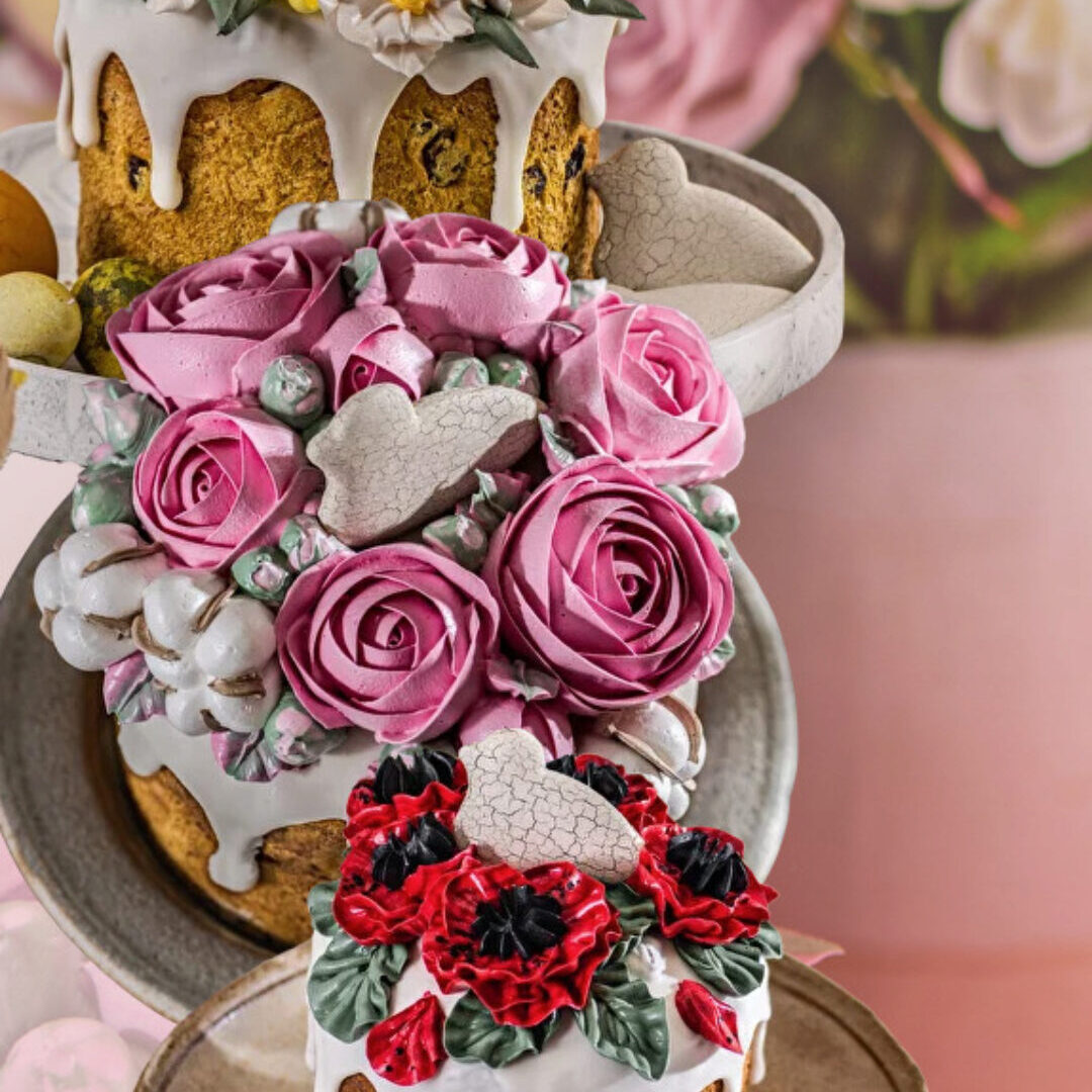 Цветы из белкового крема отлично сочетаются со вкусом кулича. Заказчики просят побольше крема на куличах и добавки на следующий день