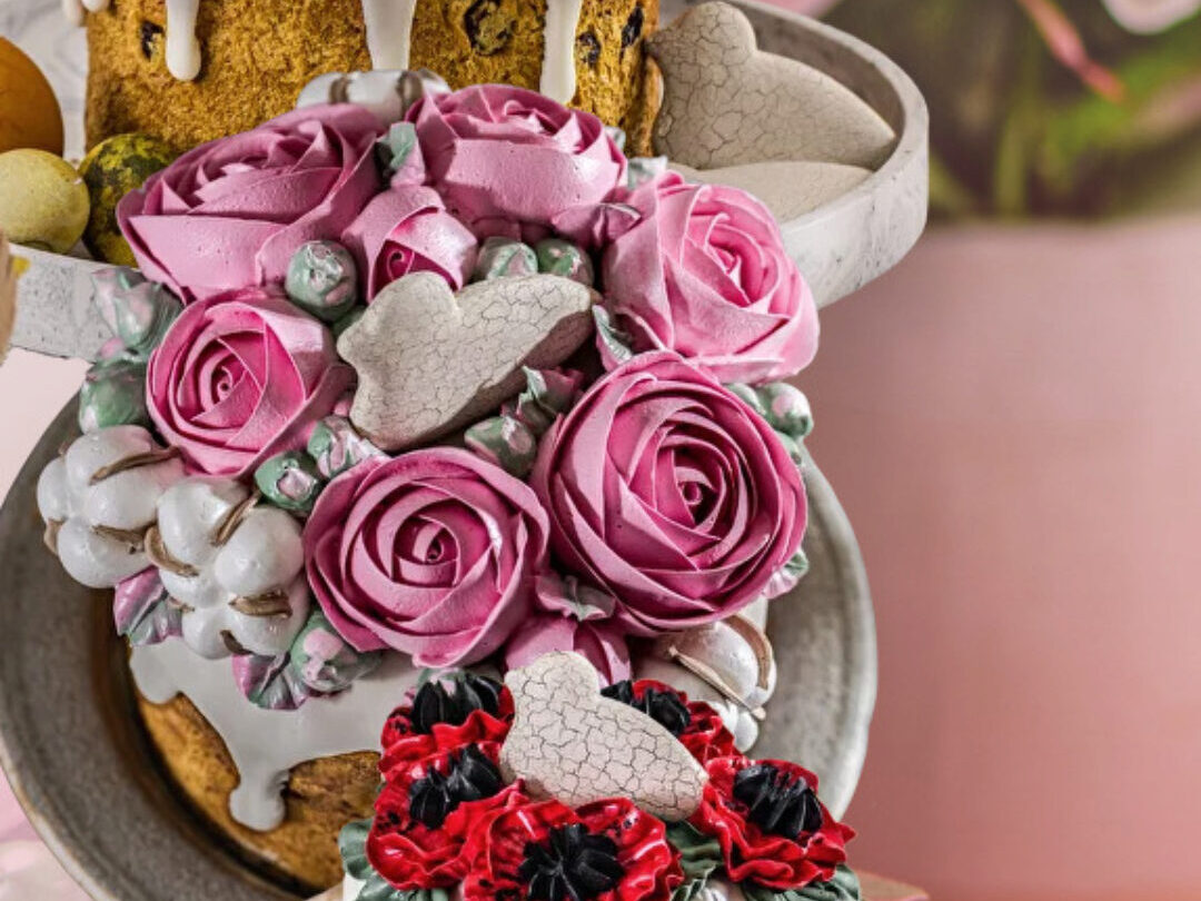 Научитесь готовить вкусный кружевной кулич и декорировать его цветами из крема без масла