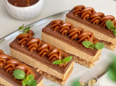 Фундучный бисквит в объятьях хрустящего крустиланта под карамельным покрывалом мусса и соленой карамели тоффи заставят ликовать гурманов своим ярким и насыщенным вкусом