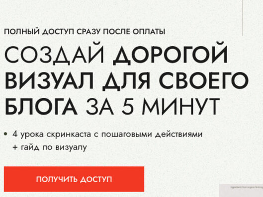 Да, Вы можете получить получить бесплатно фрагмент курса «Создай дорогой визуал для своего блога за 5 минут», просто напишите на почту или в телеграм