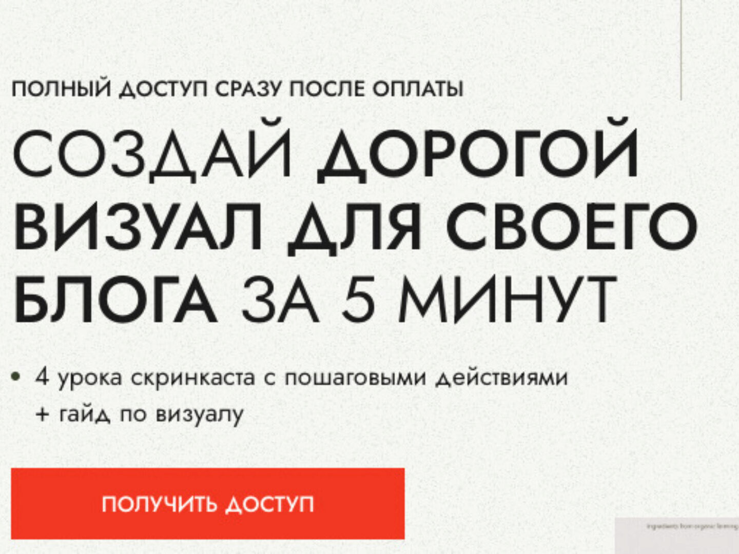 После оплаты, материалы курса «Создай дорогой визуал для своего блога за 5 минут» приходят на Ваш email.