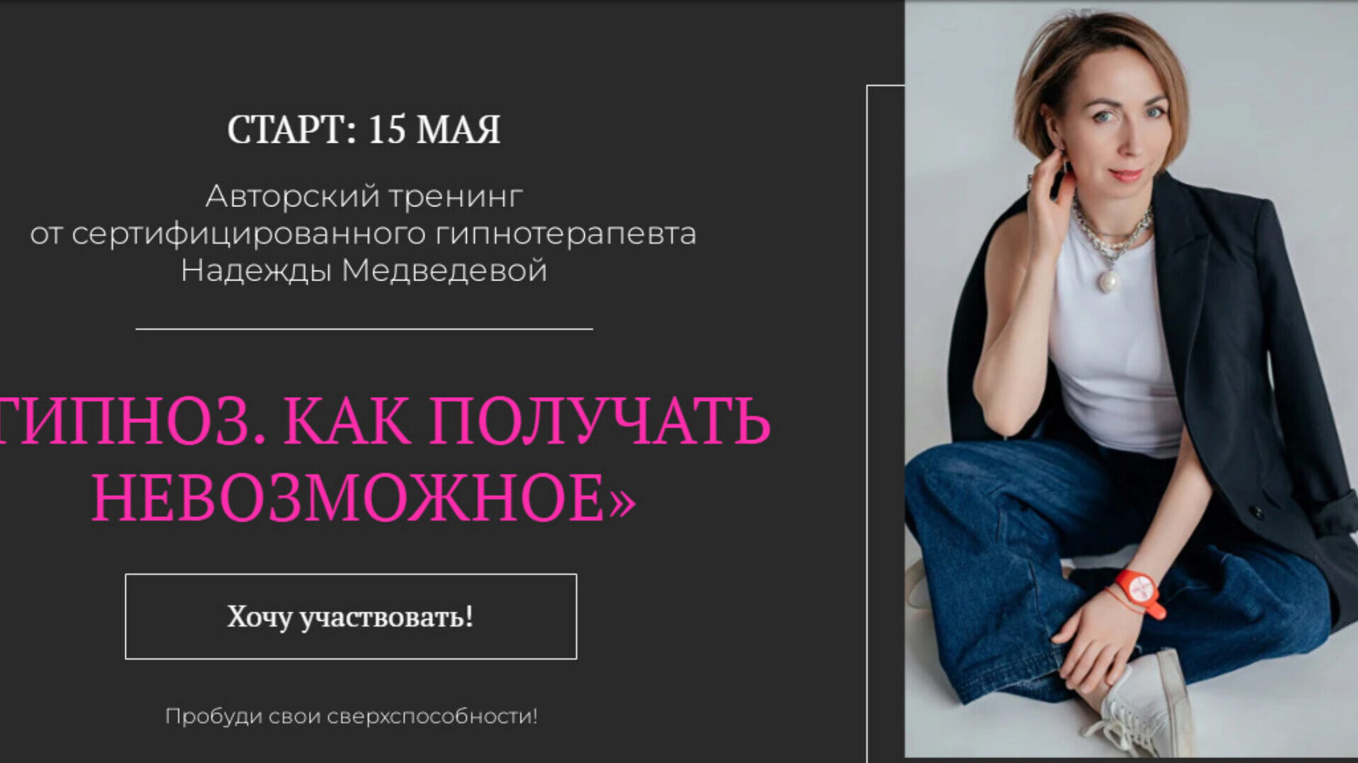 Отзывы о курсе «Гипноз. Как получать невозможное 2024. Тариф Самостоятельно» от Надежды Медведевой