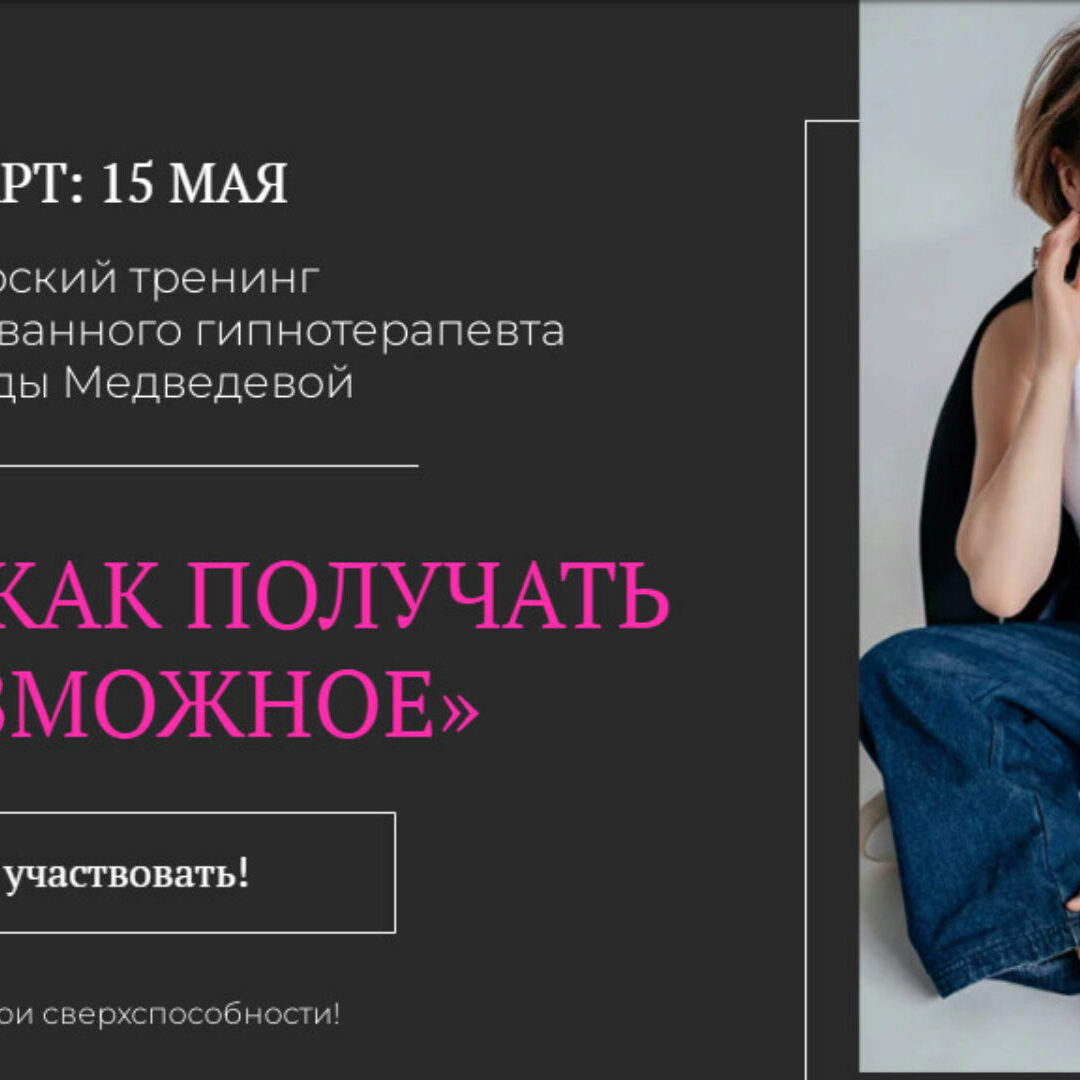 Уже через три месяца вы сможете быстро решать любые задачи с помощью гипноза, обретете свою суперсилу! Гарантирую!
