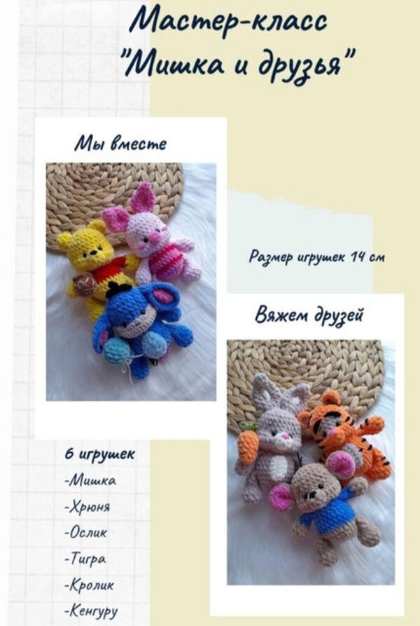 Курс Мишка и друзья, автор Надежда Жислина. По данному МК вы свяжете 6 игрушек:
