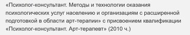 Отзывы о курсе [НАДПО] Психолог-консультант. Арт-терапевт. Методы и технологии оказания психологических услуг населению и организациям от Дарьи Веденеевой