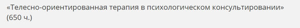 Курс переподготовки по телесно – ориентированной терапии в психологическом консультировании предусматривают углубленное изучение выбранной специальности, получение всех необходимых знаний и умений для оказания психологической помощи.