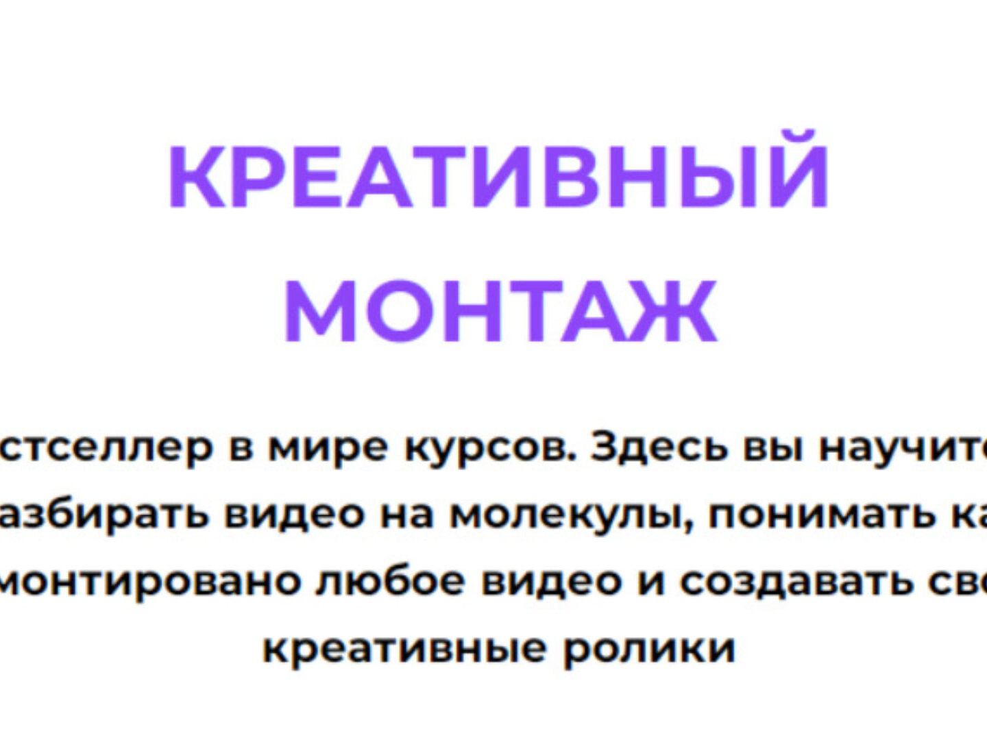 Курс 2023 года обновленный Научись монтировать видео с нуля, не выходя из дома, всего за 6 недель интенсивного обучения и практики Для кого этот курс? Для очень многих, а именно: Если ты ещё никогда не монтировал видео и только открываешь для себя монтаж Если ты хочешь актуализировать и
