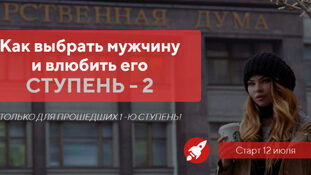 Как выбрать мужчину и влюбить его Участие в 4-х недельном online-тренинге 8 видео + 9 ВИП лекция Для тех, кто хочет найти статусного мужчину и влюбить его уже в ближайший месяц! Если ты чувствуешь, что это про тебя: Я никому не нужна... Я – звезда, меня должны любить по факту, и точка! Мне очень