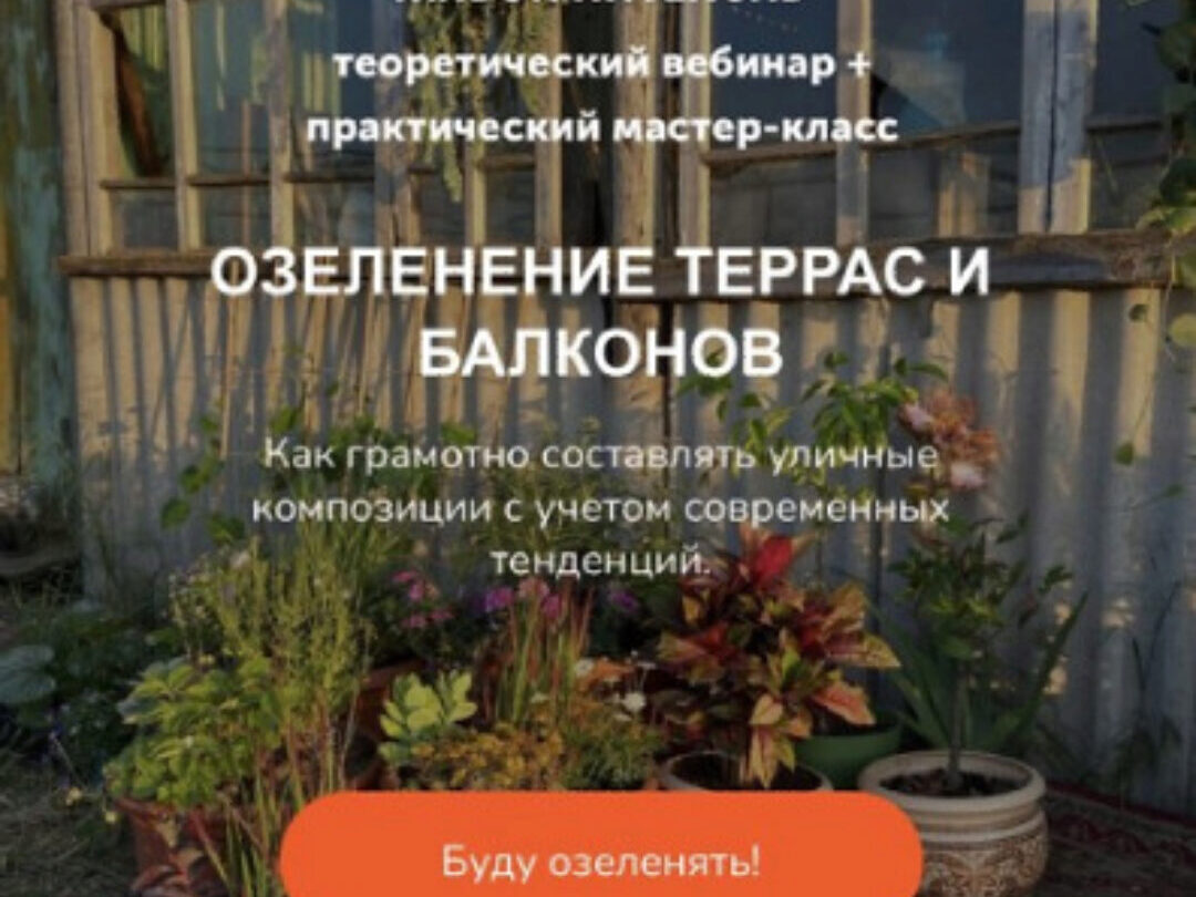 Курс Plants_zasteklom - Озеленение террас и балконов. Тариф Озеленитель террас и балконов, автор Натали Серова. 1 ДЕНЬ