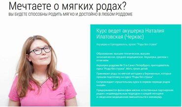 Принимает роды по мягкой методике у беременных, которые прошли подготовку на курсе «Роды без страха».