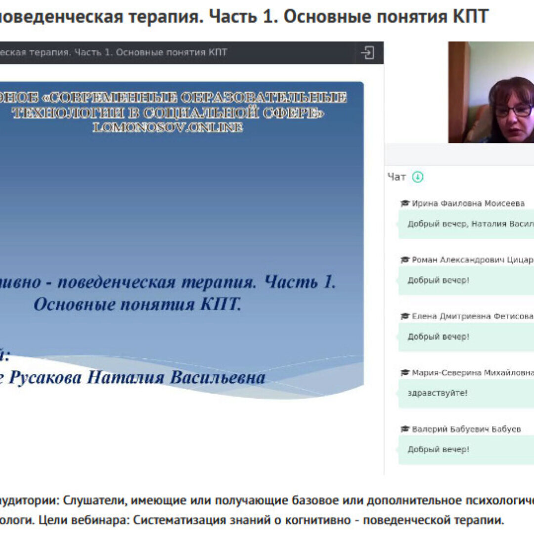 Отзывы о курсе Вебинары «Когнитивно-поведенческая терапия» от Наталии Русаковой
