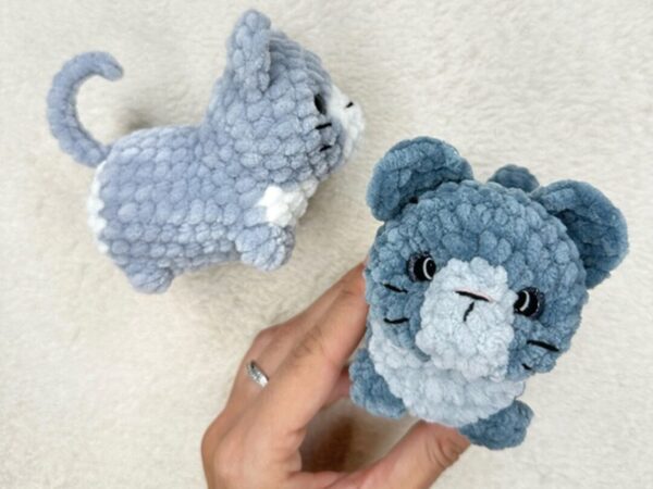 Нет пришивных деталей. Высота котенка - 8 см, длина - 11 см.