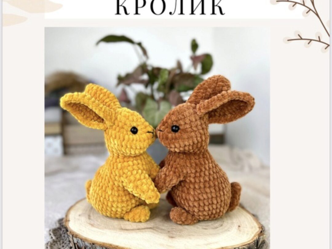 МК в формате PDF Крольчонок вяжется за пару часов. Из 1 моточка получится 4 игрушки. Голова, тело, лапки и хвостик вяжутся одной деталью, без отрыва нити. Пришиваются только ушки