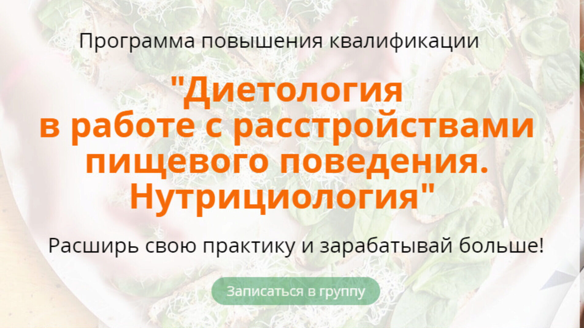 - Сформируете понимание роли диетолога в работе с расстройствами пищевого поведения