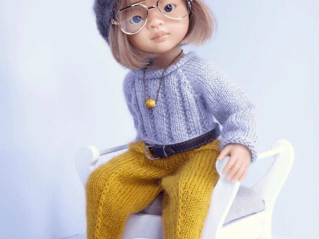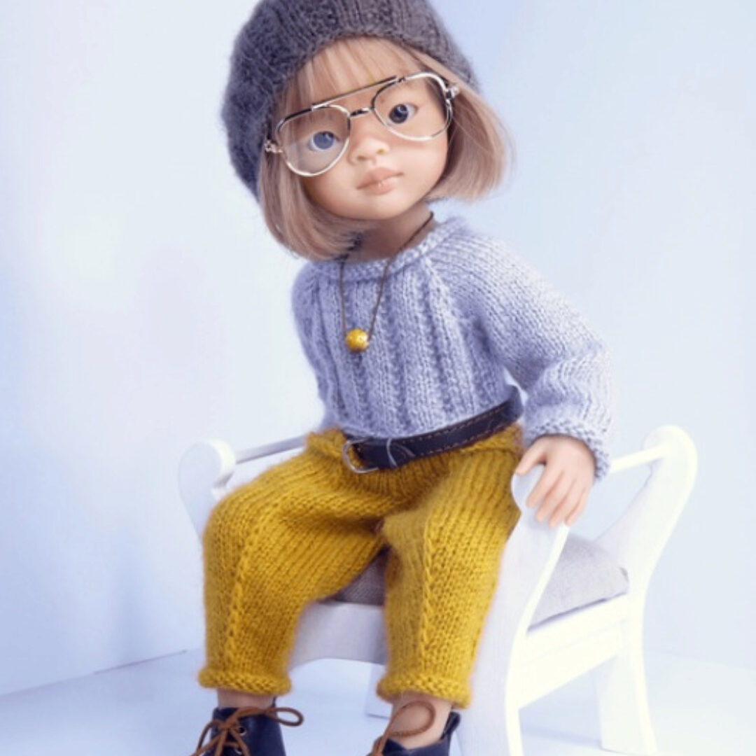 Описание по вязанию джинсового костюма для кукол Паола Рейна! Вы свяжете: 1. Джинсы/брюки 2. Пиджак 3. Топ 4. Кепку Описание в формате PDF, его можно распечатать или вязать с планшета/телефона. 22 страницы и более 50 подробных фото, а также схемы. Пиджак с отложным воротником, накладными карманами,