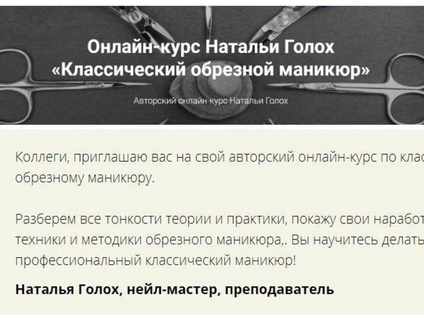 Курс Мастера красоты - Классический обрезной маникюр, автор Наталья Голох. Содержание курса