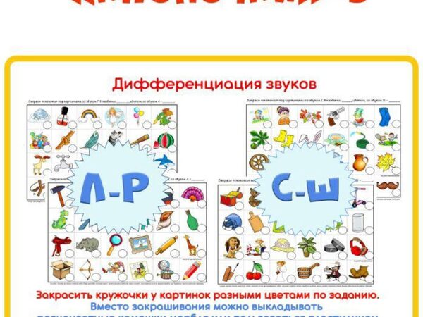 Задания на дифференциацию парных по звонкости-глухости звуков С-З и Ш-Ж (по 2 листа на каждую пару) Закрасить кружочки у картинок разными цветами по заданию. Вместо закрашивания можно выкладывать разноцветные камешки марблс или пользоваться пластилином (для долговечности лучше заламинировать). файл