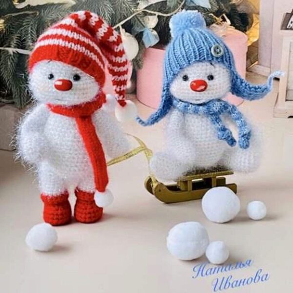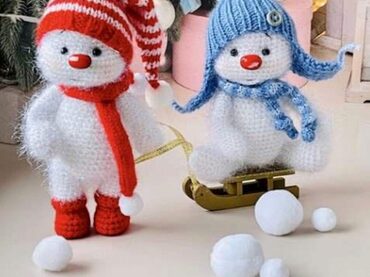 Пряжа YarnArt Christmas, снеговики связаны крючком, одежда спицами.