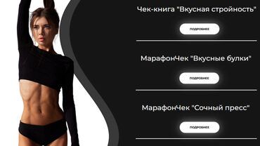 Моя чек-книга бестселлер «Вкусная Стройность». Это база! Мастхэв для тела твоей мечты. Из неё ты узнаешь, как есть любимые сладости и худеть при этом, а также всё о питании, тренировках и образе жизни для вечной стройности. Многие девушки достигают своих желаемых результатов, только лишь основываясь на эту часть моей программы, даже не переходя к другим её составляющим.