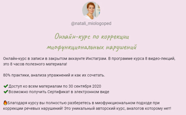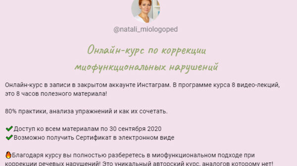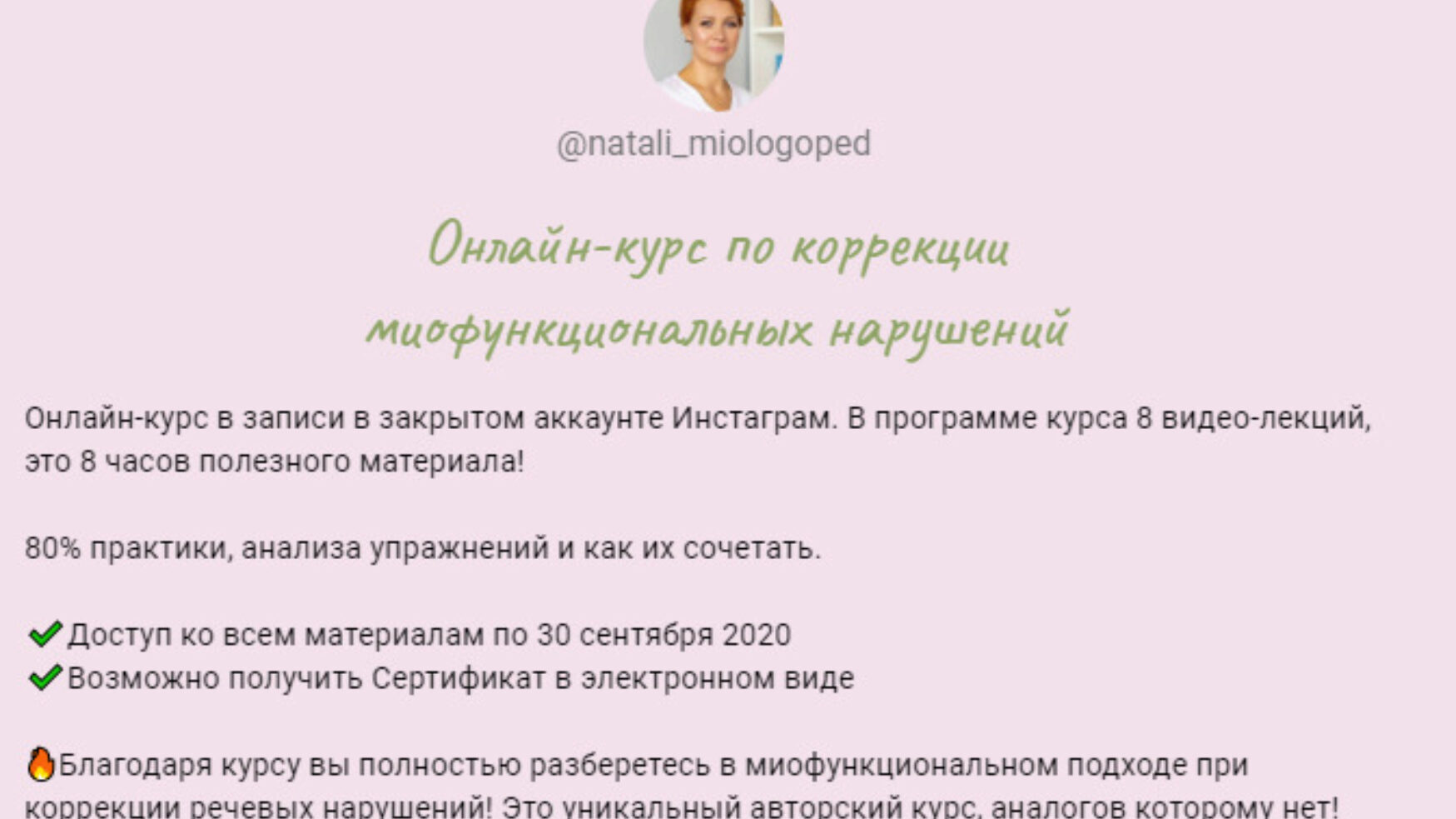 Отзывы о курсе Онлайн-курс по коррекции миофункциональных нарушений (Наталья Лабутина (natali_miologoped))
