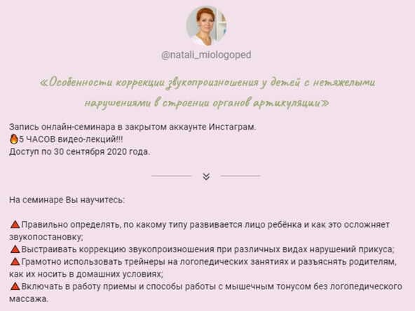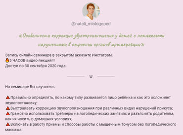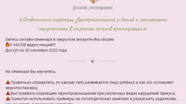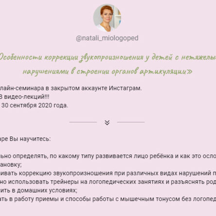 Отзывы о курсе «Особенности коррекции звукопроизношения у детей с нетяжелыми нарушениями в строении органов артикуляции» от Натальи Лабутиной