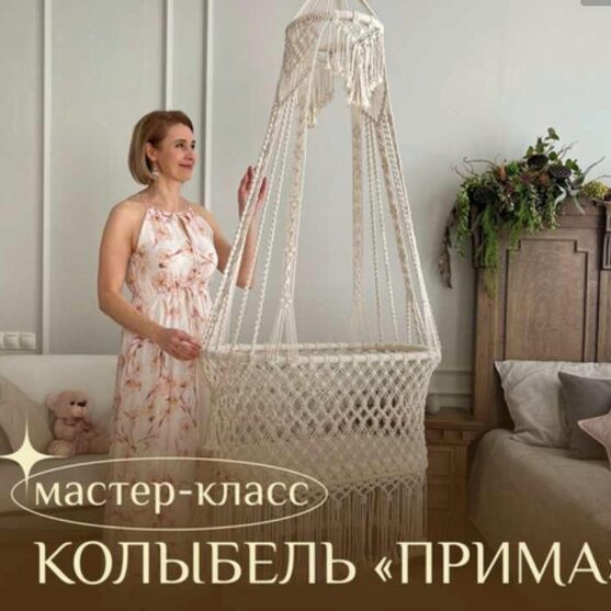 Это идеальный МК для будущих мам, ведь колыбель можно сплести за 3-4 дня без опыта в макраме. В результате получается нежная и изящная люлька для малыша.