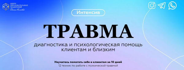 Интенсив «Травма: диагностика и психологическая помощь клиентам и близким» — это новый формат обучения, который поможет всего за 10 дней получить концентрат знаний, необходимых каждому человеку, чтобы помогать себе, близким, клиентам и окружающим людям быстро справляться со сложными эмоциональными состояниями.