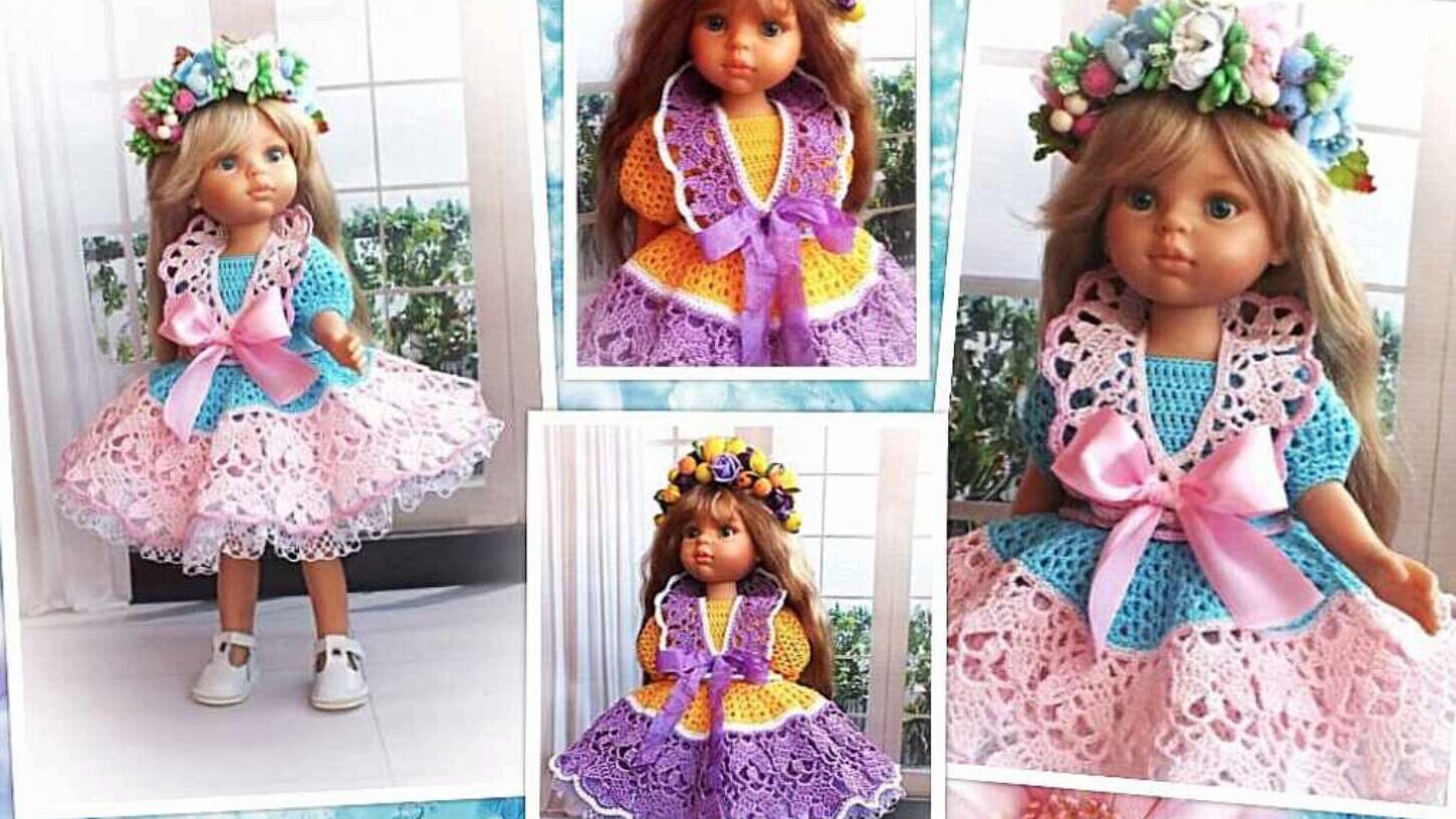 pdf МК. Следуя моей инструкции вы свяжете крючком ажурные платья с кружевными подъюбниками для кукол Мия Mia Nines D'Onil. В файле подробное описание вязания, подробные графические схемы и фотографии процесса вязания. Уровень сложности средний. У вас должен быть опыт вязания крючком для кукол.