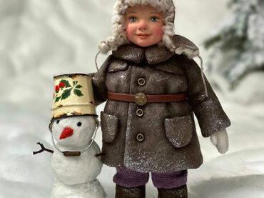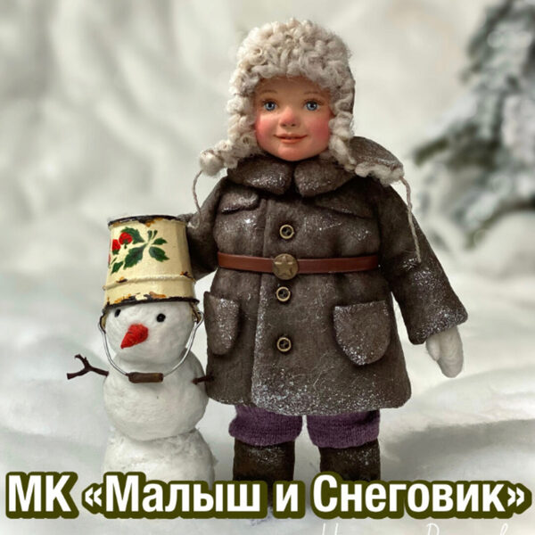 Сложность работы средняя. Рост игрушки 18 см. Ничего не пришивается, нет утяжек и тонировкиРучки на проволочном каркасе, голова на шплинтовом креплении. В мк есть : описание вязаного цилиндра, выкройка шитого цилиндра, описание шапки спицами, процесс лепки двух леденцов Стоимость мастер- класса